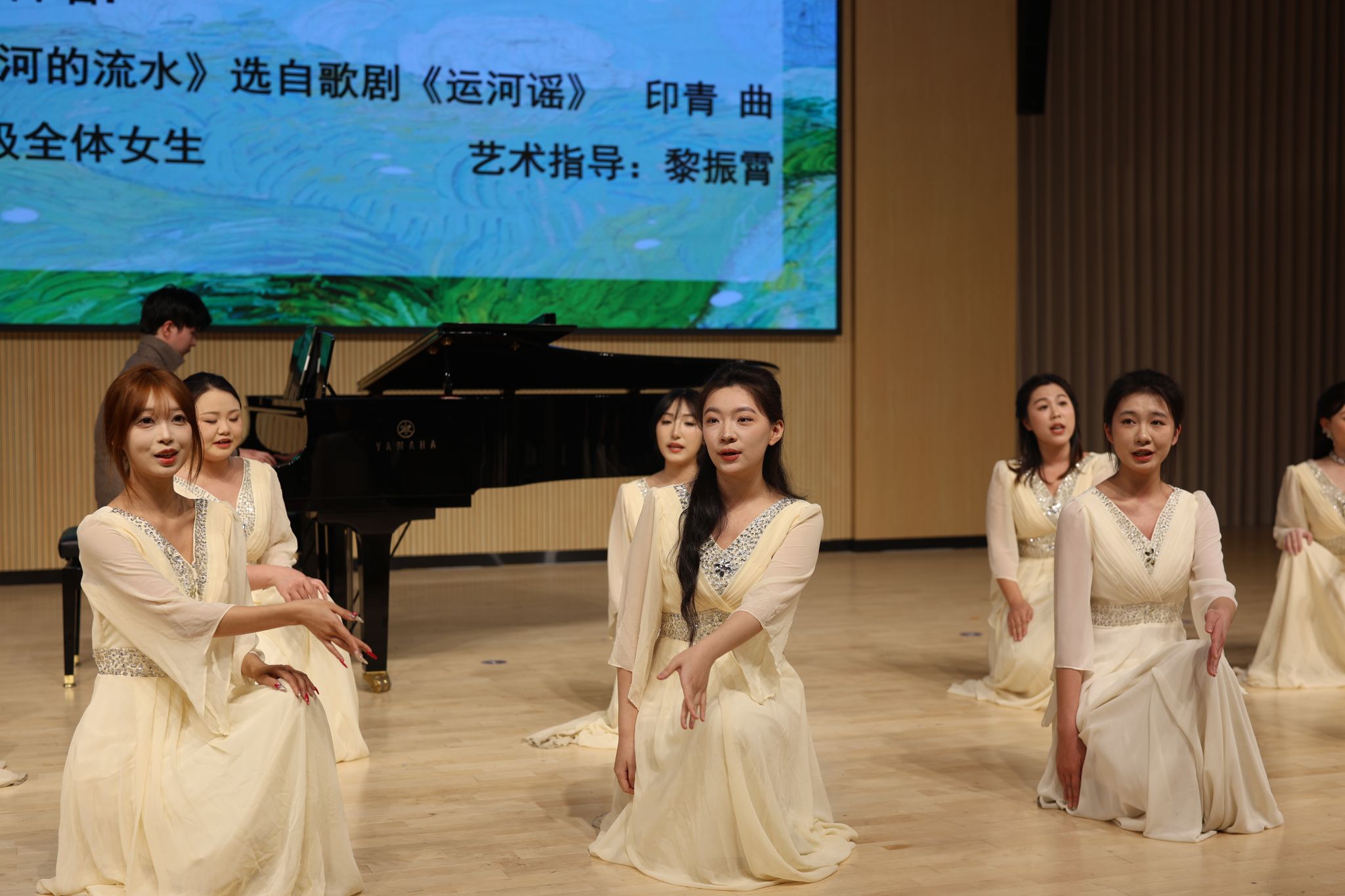 演出以一首充满生机的大合唱《大豆白米花生》拉开序幕,同学们热情洋溢的演唱瞬间点燃了全场气氛。随后,声乐方向与钢琴方向的学生们通过独唱、独奏、重唱、四手联弹及小合唱等多种形式,精彩演绎了《玻璃窗》《匈牙利狂想曲》《康定情歌》《我们是运河的流水》《卡农》《就在山水间》等十余首中外经典曲目。整场演出在全体同学合唱《毕业歌》的深情旋律中圆满落幕——正如歌词中所唱:“年轻的梦在这里发芽,走过了春秋冬夏……告别了青春的美丽童话,我们都已经长大。”音乐系2026届毕业生自2022年9月入学,历经四年充实的大学生活,在不断精进与成长中,于2025年年尾,为这段专业学习生涯画下了一个饱满的阶段性句点。