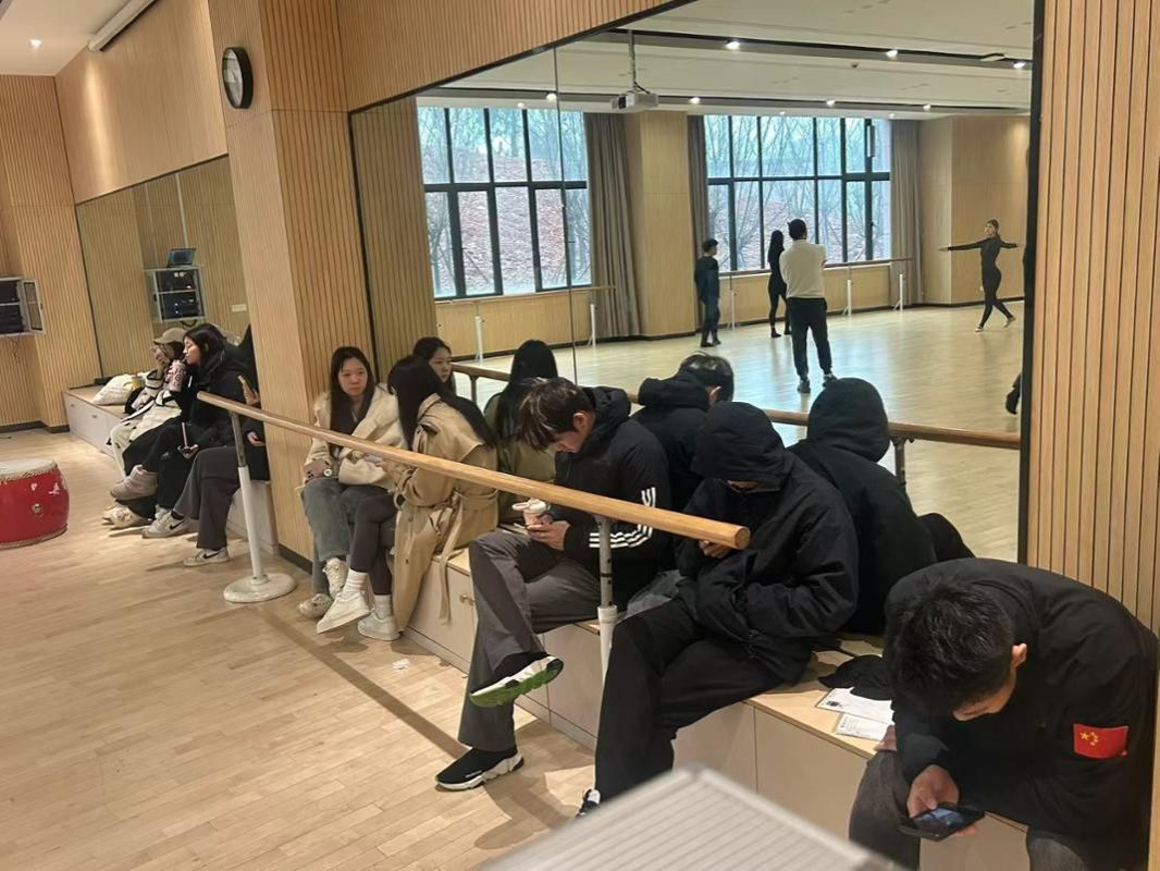舞蹈房学生物品摆放凌乱,且部分随意放在门口。已及时让各教研室负责人转达学生个人物品摆放问题。