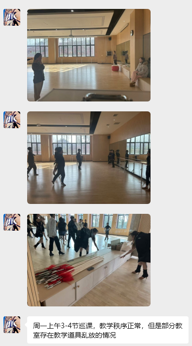 有极个别教室存在道具乱放的情况,已联系道具相关教研室负责人,对其进行清点和放回学院道具间,同时对学生提出道具随身携带的问题。